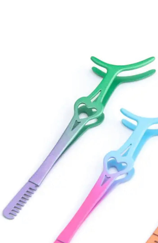 Ombré 2-1 Strip Lash Tweezer & Comb (Green & Purple Combo)